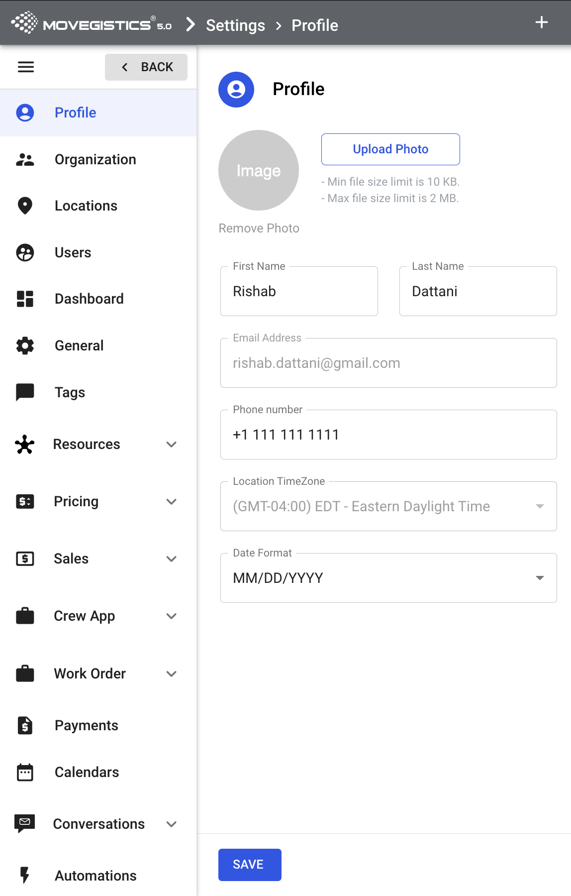 Your Profile Settings are the foundation of your Movegistics account. They determine how your company’s name, contact information, time zone, and branding appear across the platform—from estimates and invoices to customer emails. Ensuring this information is correct helps improve professionalism, accuracy, and trust with your customers ✨.
