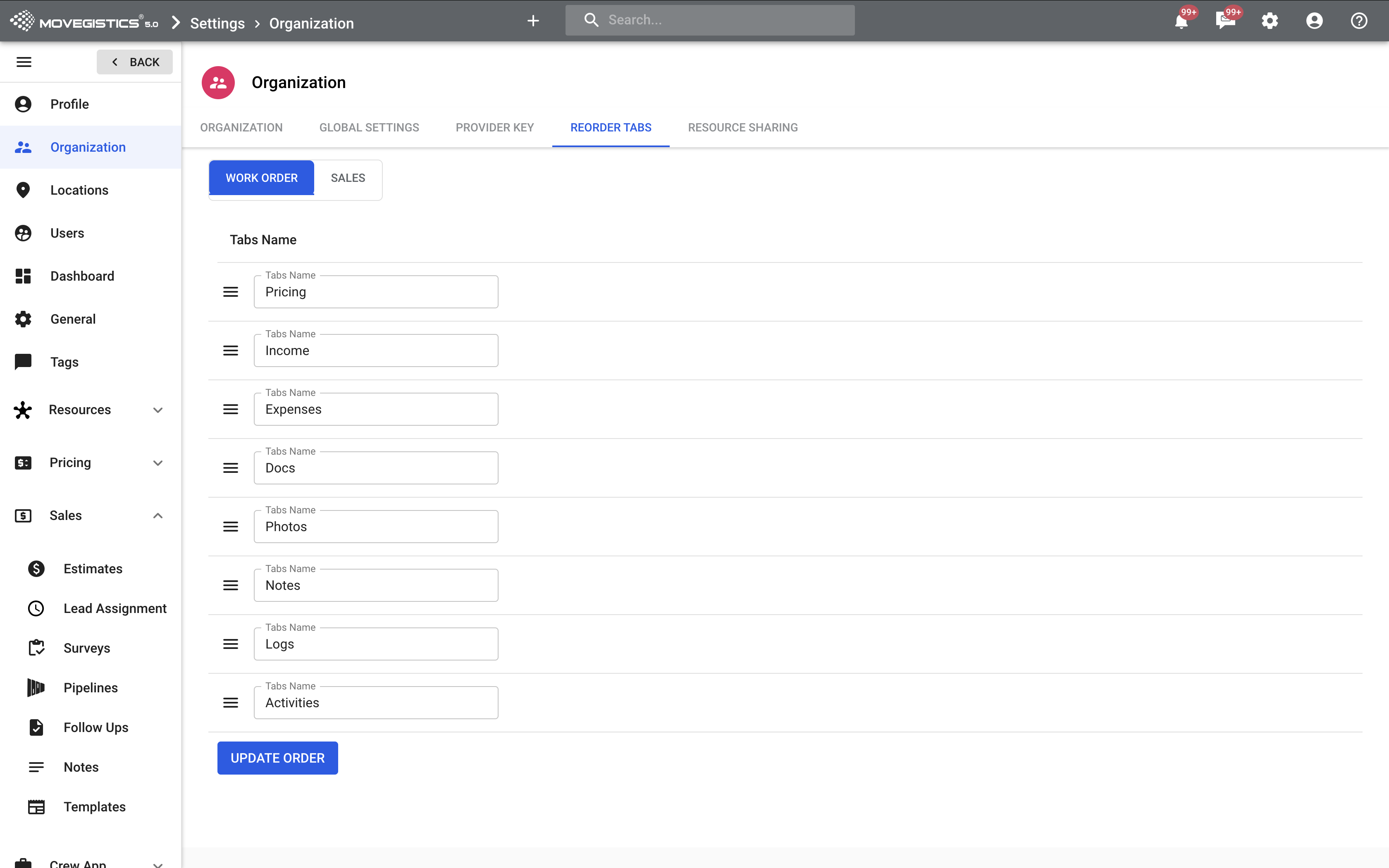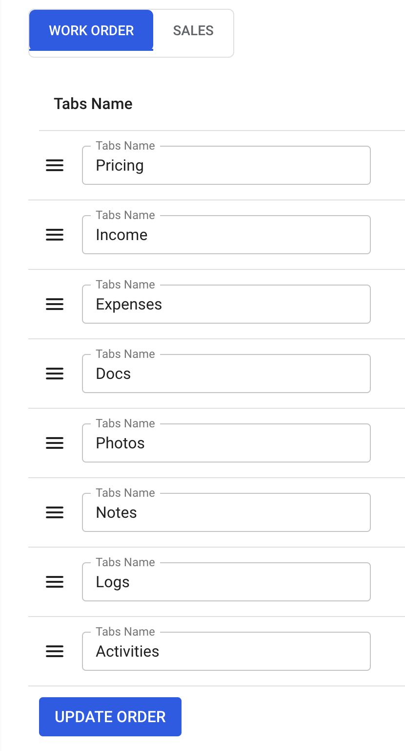 🗂️ Reorder Tabs in Sales & Work Order View
