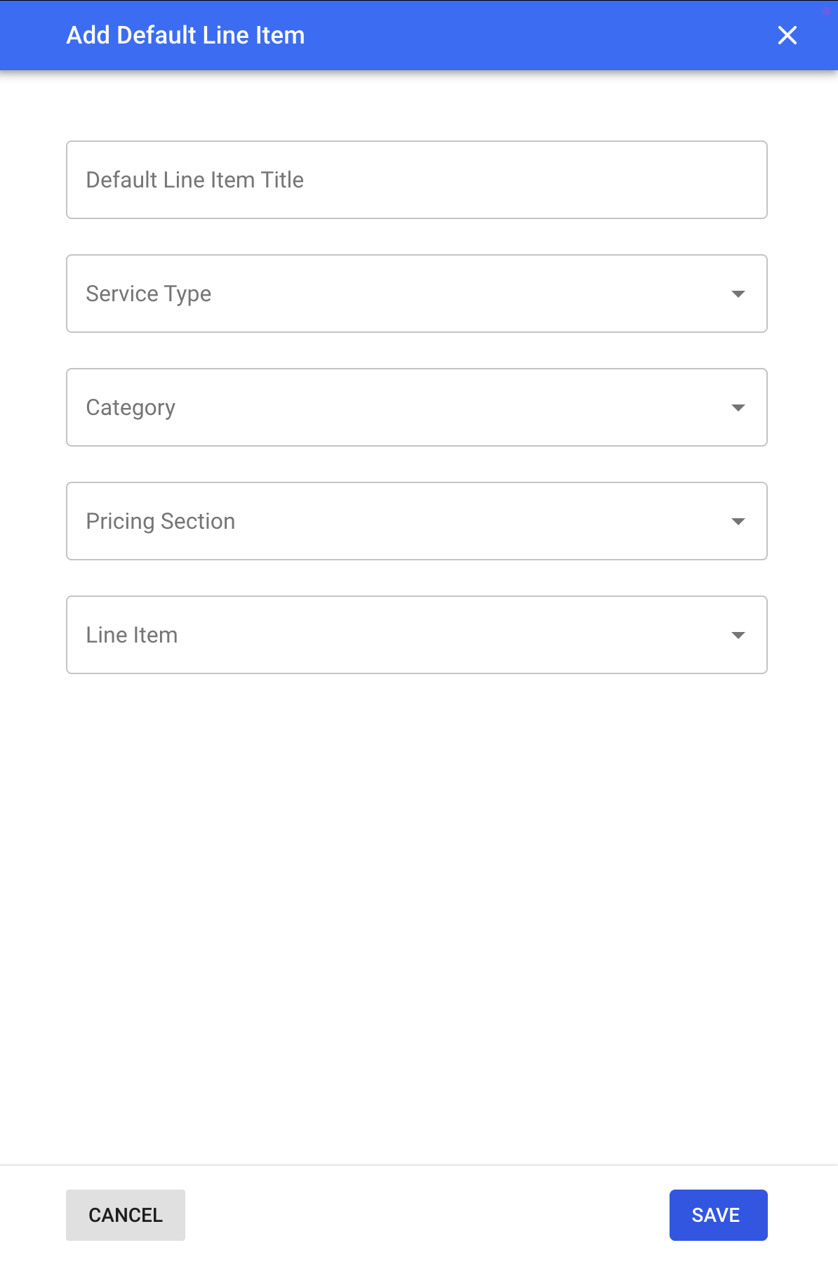 Click the blue + button at the top left to add a new default line item.