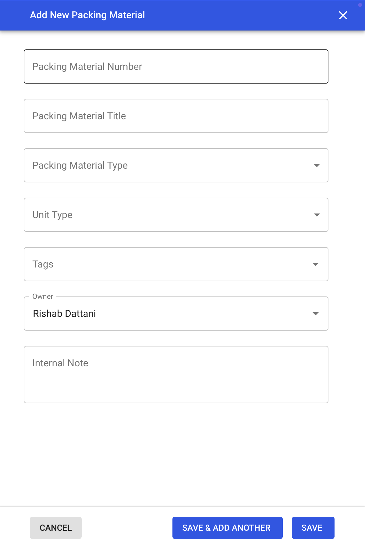 Click Save to finalize your new packing material or Save & Add Another if adding multiple items.