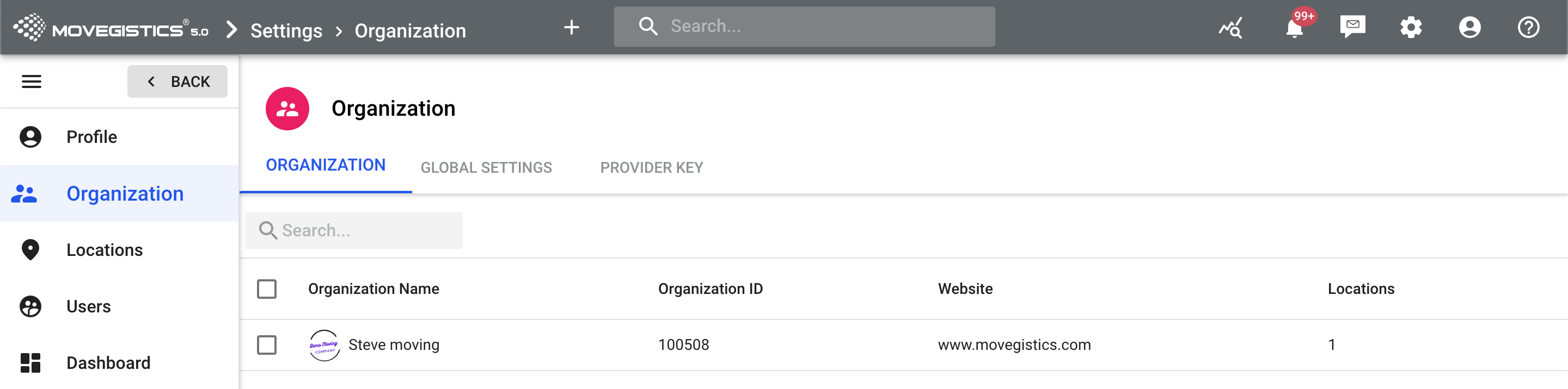From the Settings menu, go to Organization.