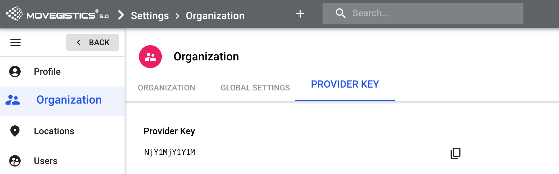 Your unique Provider Key will display in this section. Click the copy icon to copy it for use.