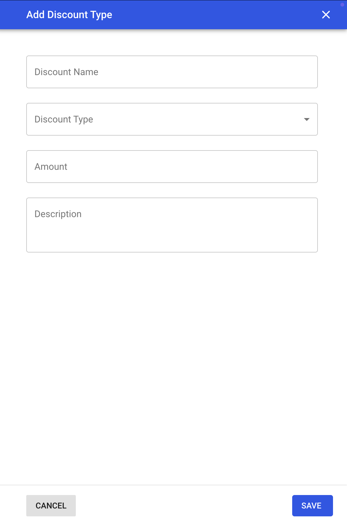 Click the blue + button at the top left to add a new discount type.