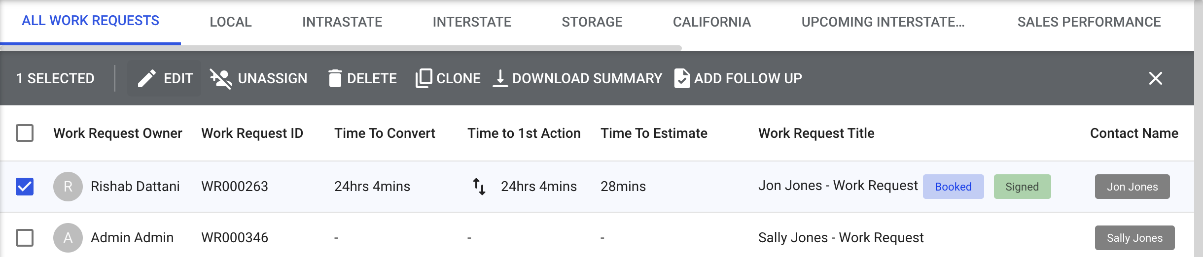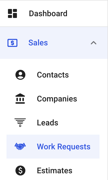 Go to the Sales module and click on Work Requests.