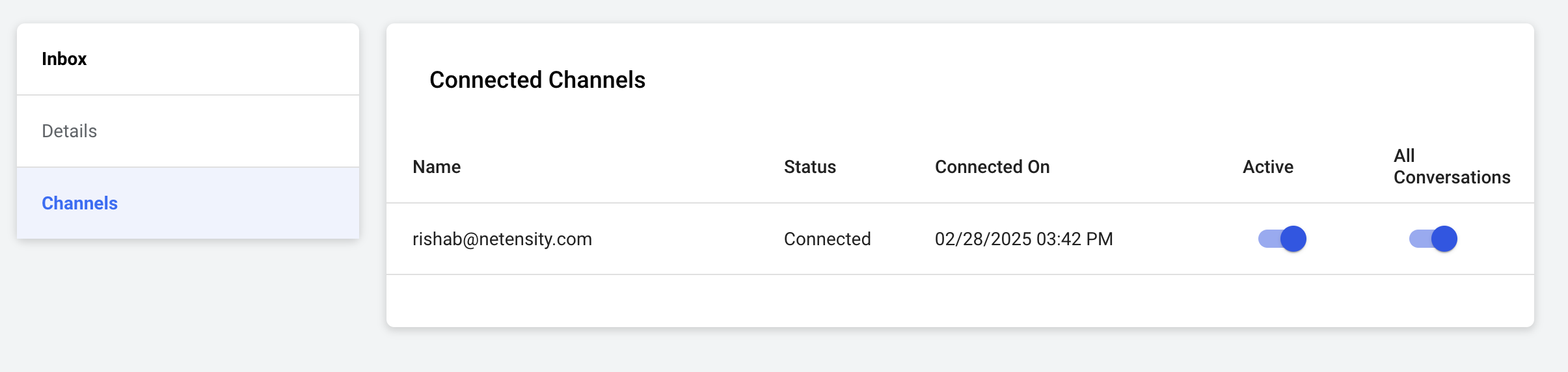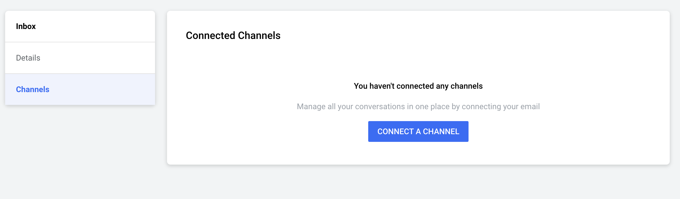 After adding your inbox, click Connect a Channel.