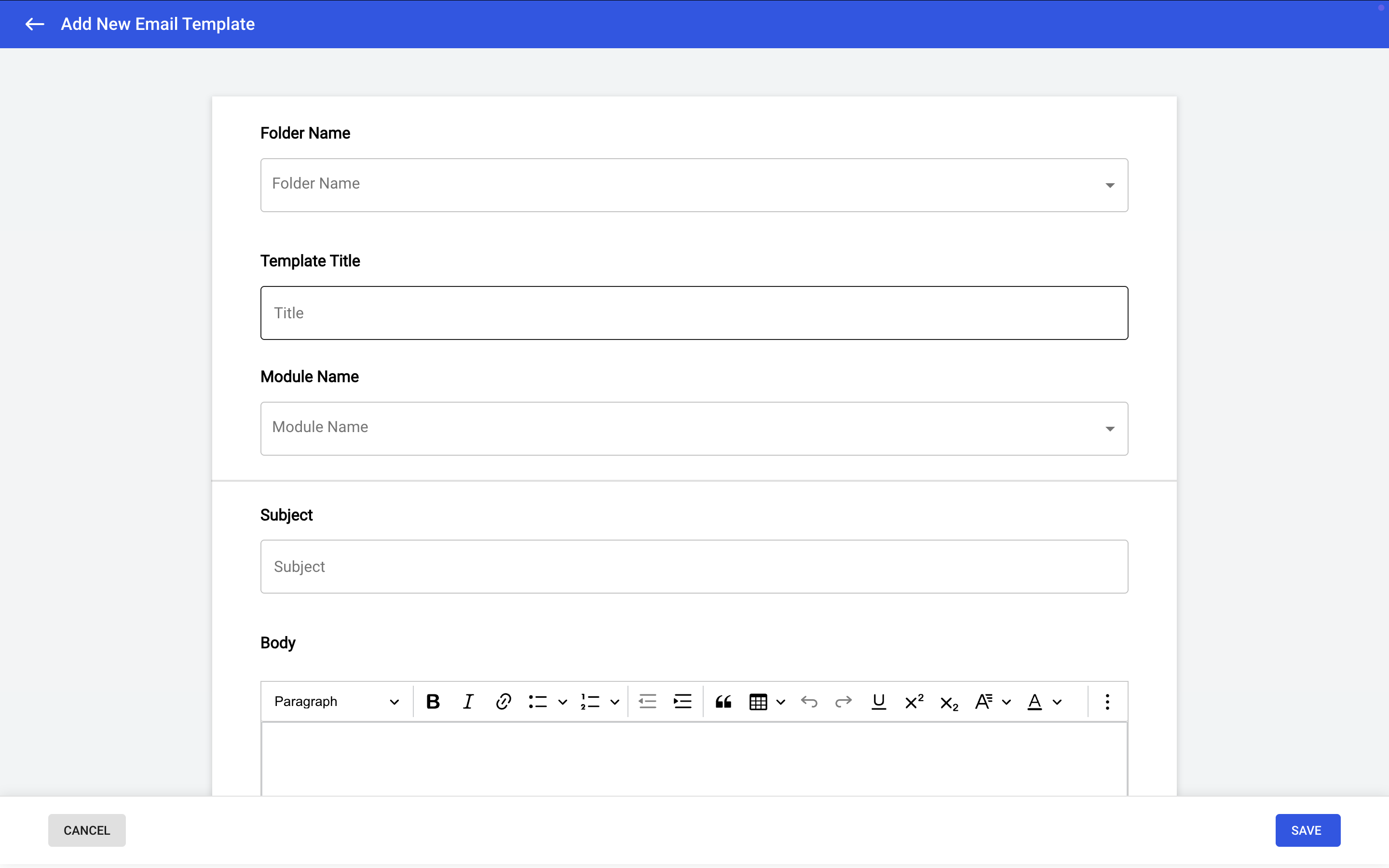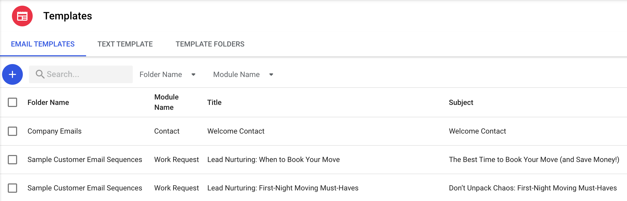 Click the plus (+) icon to create a new template