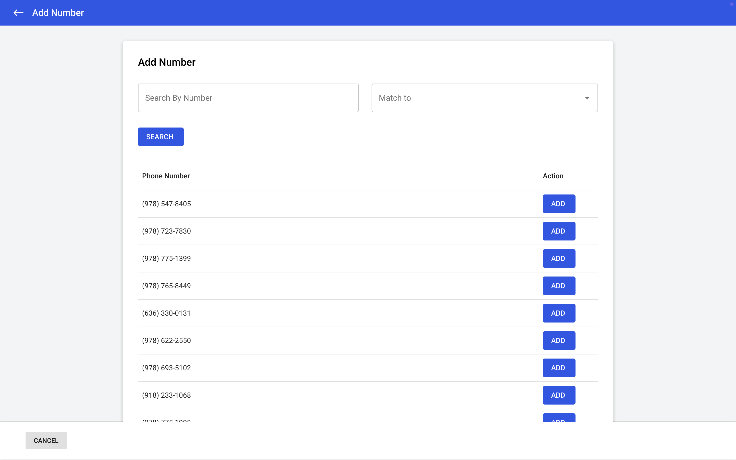 Select the number you want and click Add.