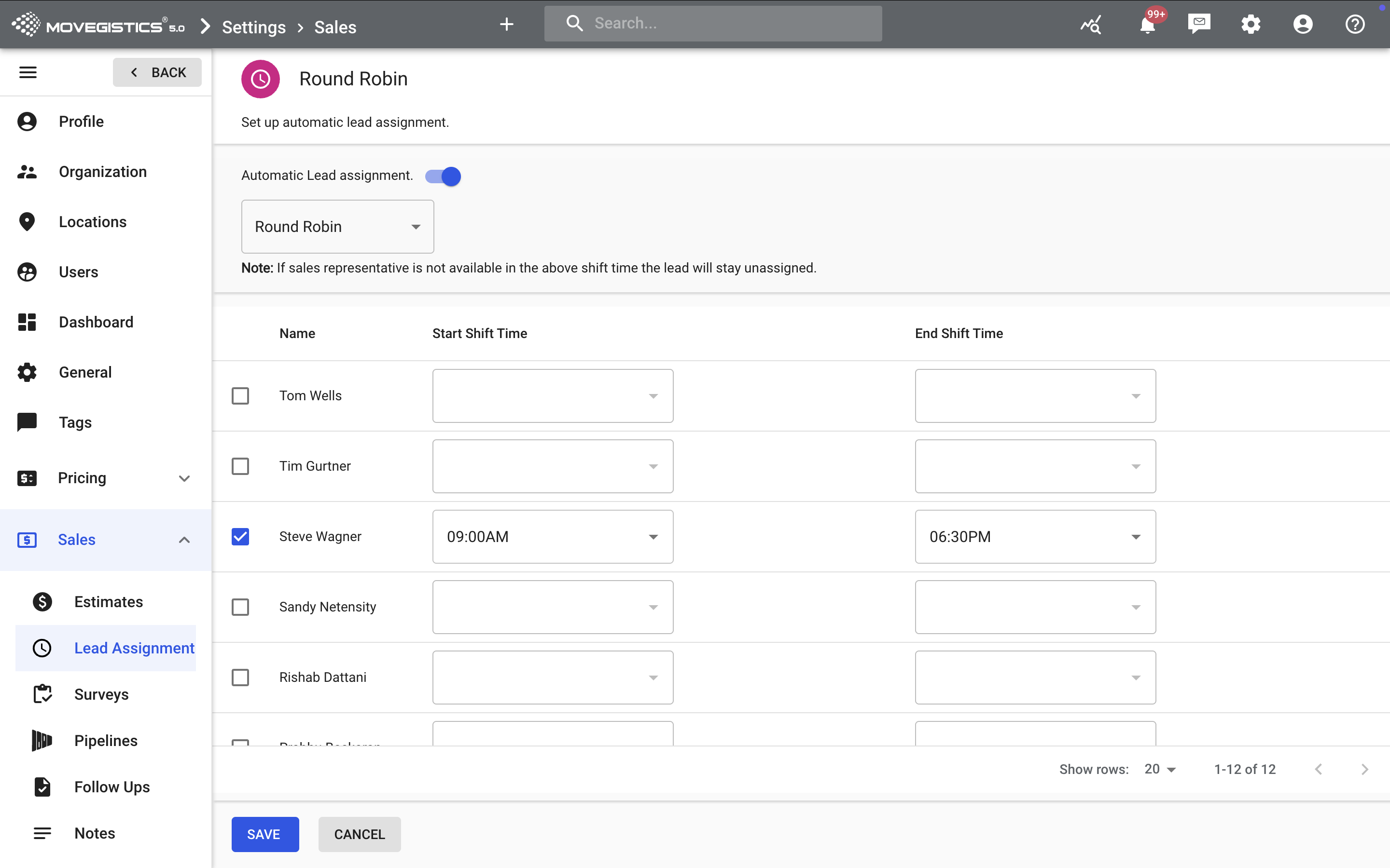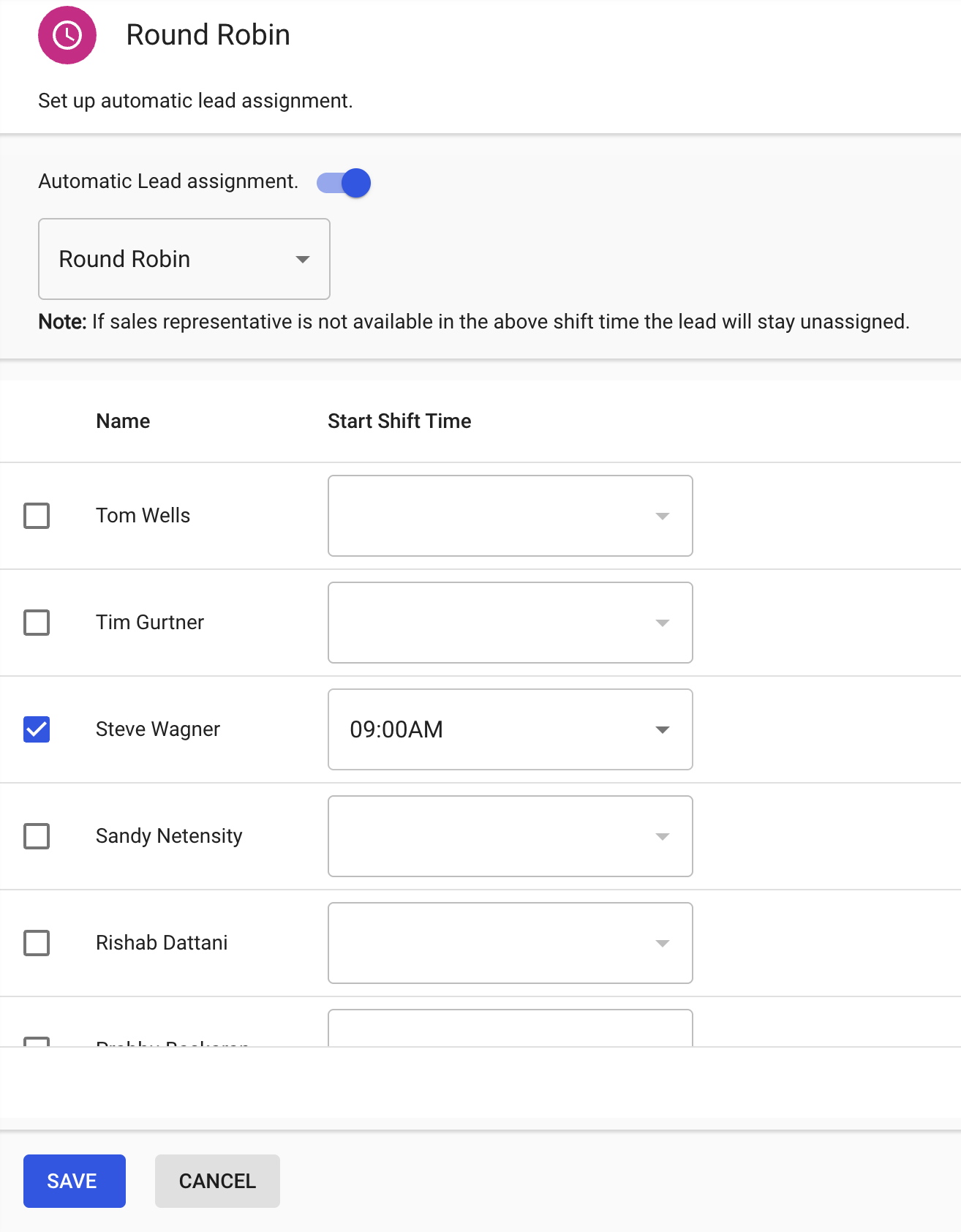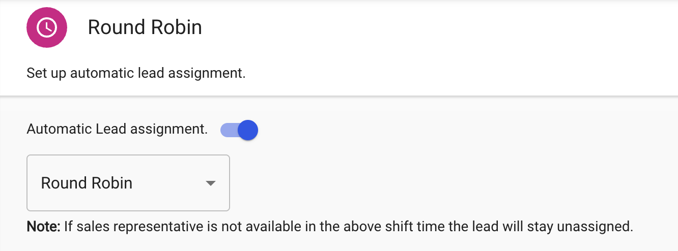 Note: If a rep is not available during their shift time, leads will remain unassigned until manually reassigned.