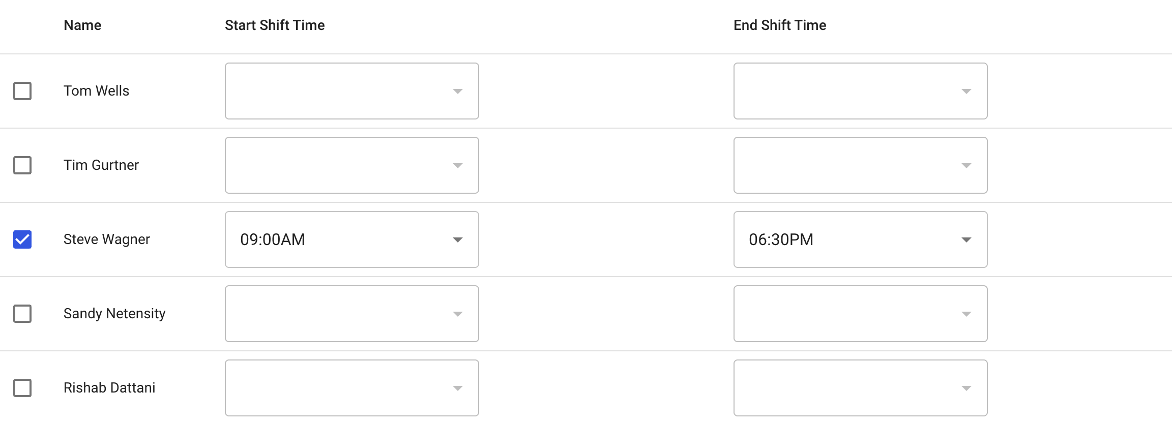 Define Start Shift Time and End Shift Time for each rep.