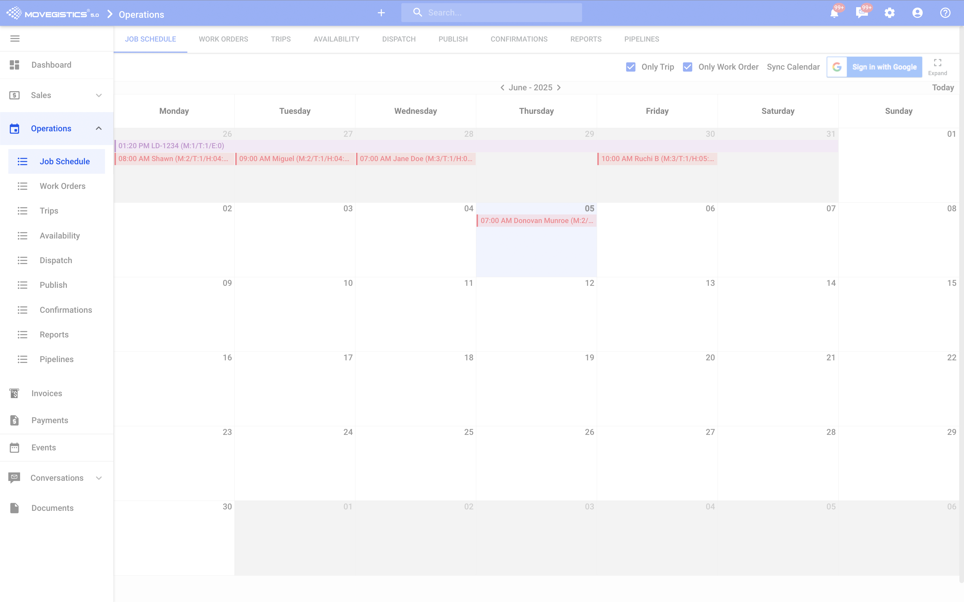 β Jobs posted in Movegistics β appear in Google Calendar
