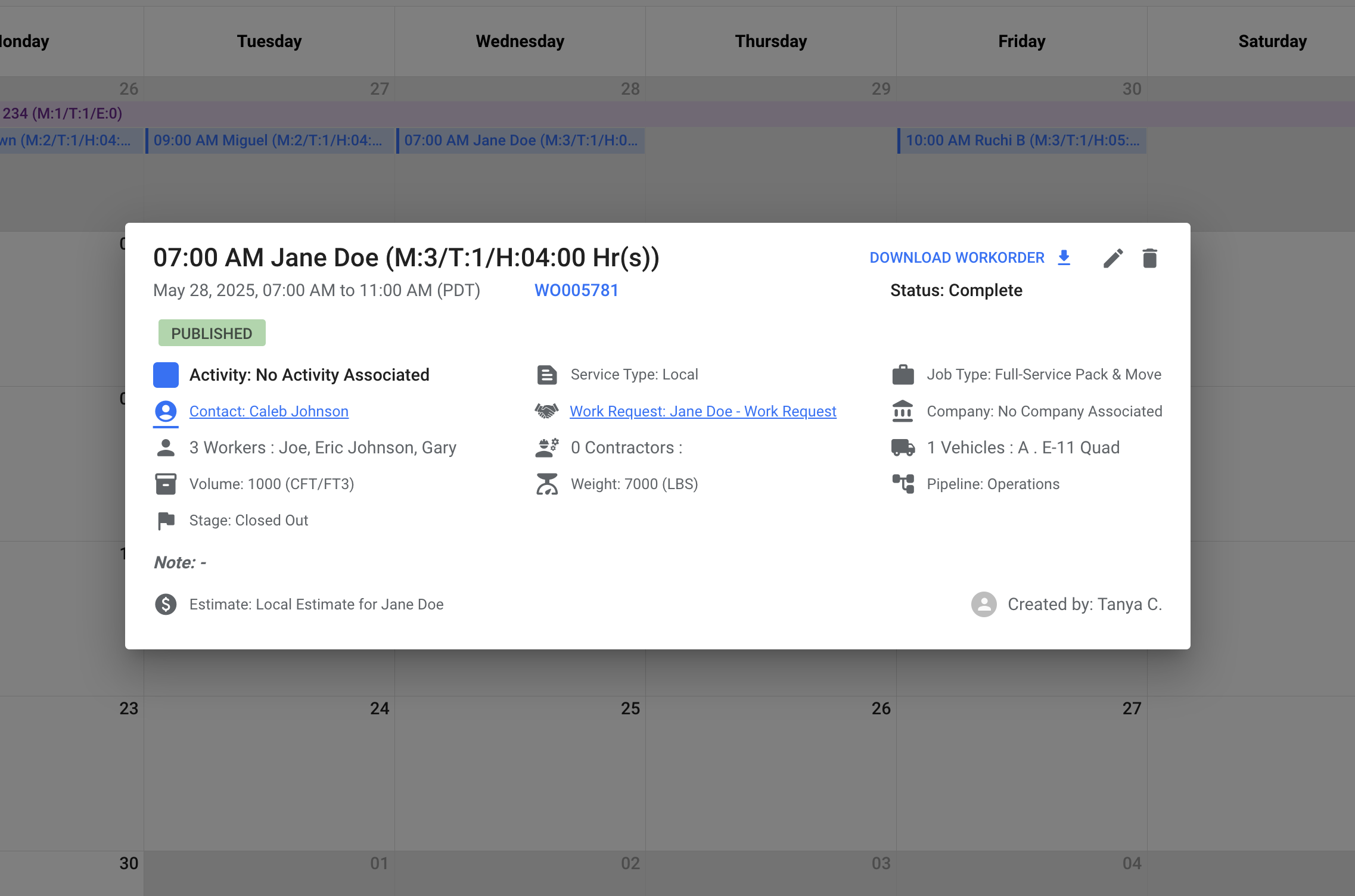When you click on a job from the calendar, youβll see:
