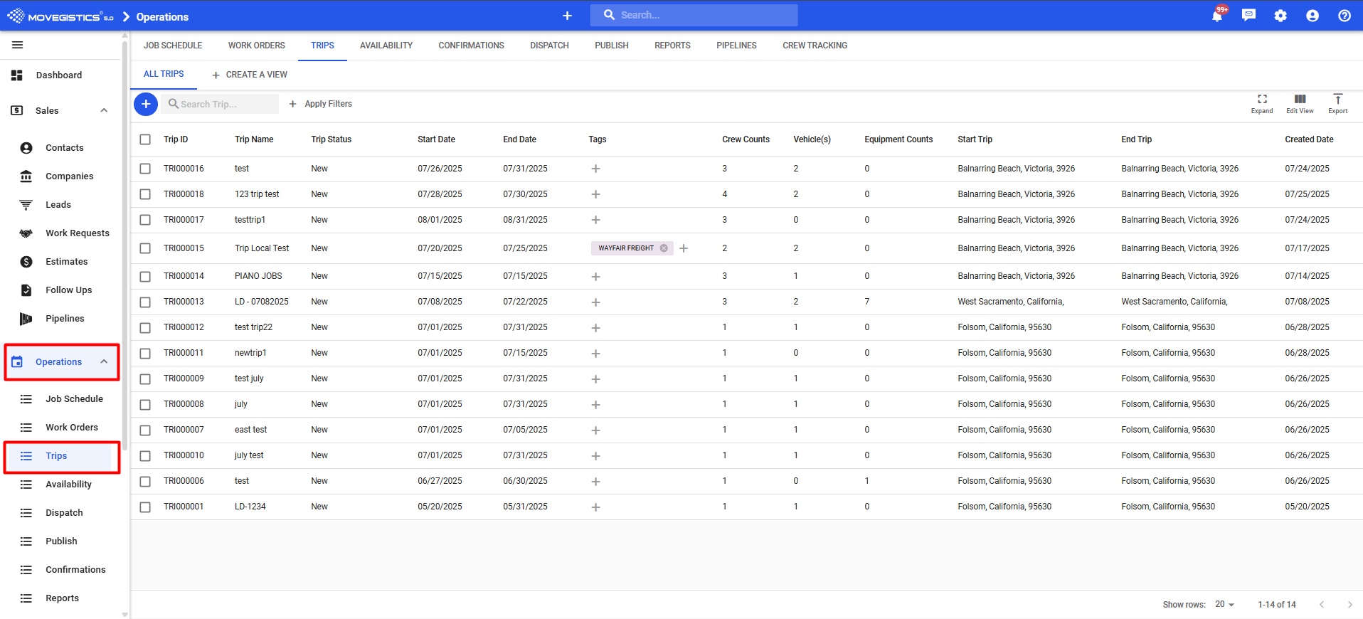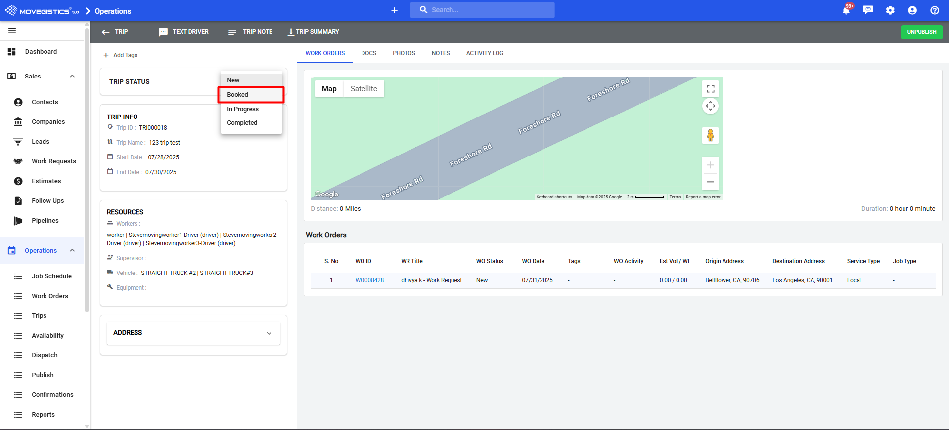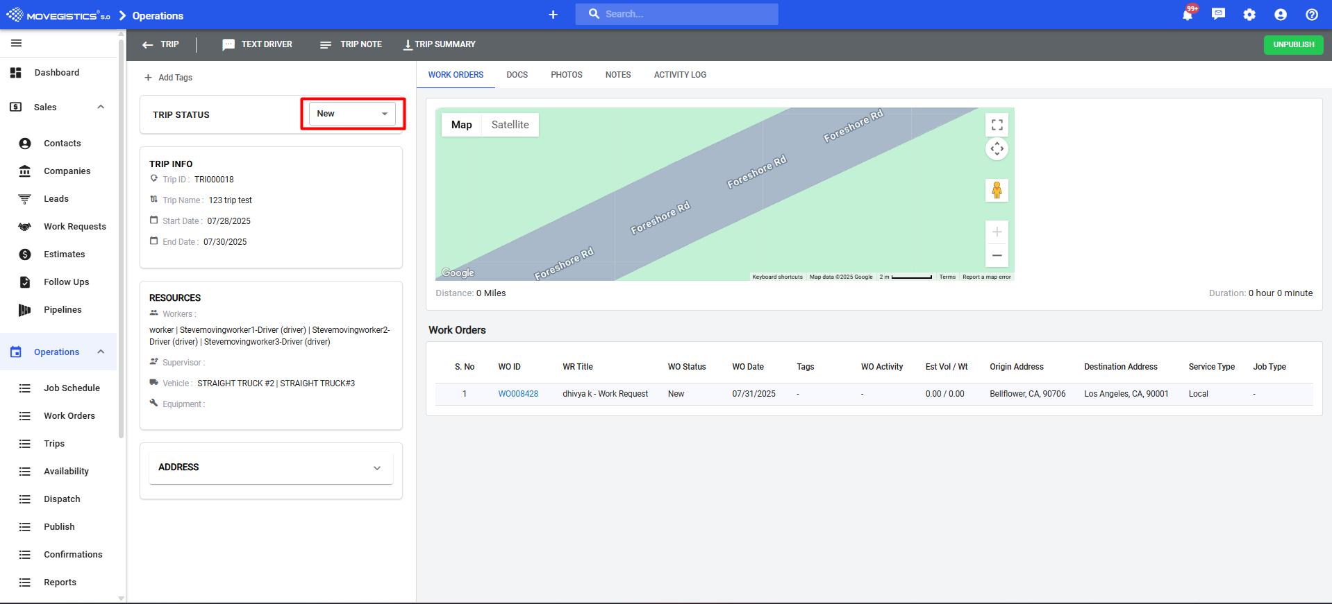 Creating and dispatching Trips in Movegistics 5.0 ensures that all Work Orders for a truck and crew are grouped together in a logical, trackable route. This makes it easier to manage schedules, reduce drive time, and give your crew clear instructions. When Trips are dispatched correctly, you avoid missed assignments, late check-ins, and inefficient routing.