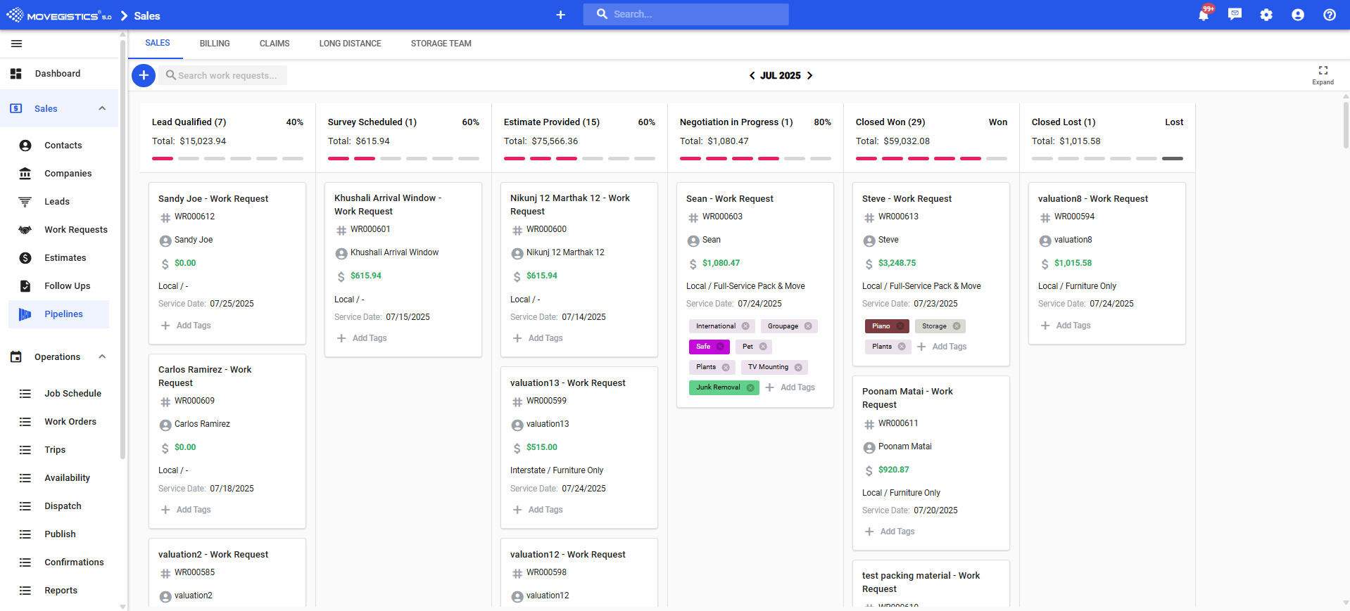 The Operations Pipeline in Movegistics 5.0 brings powerful stage-based tracking to your Work Orders, much like what sales teams have used with the Sales Pipeline. Until now, there was no visual pipeline to track a job's operational lifecycle—but with this upgrade, your dispatch and ops team can: