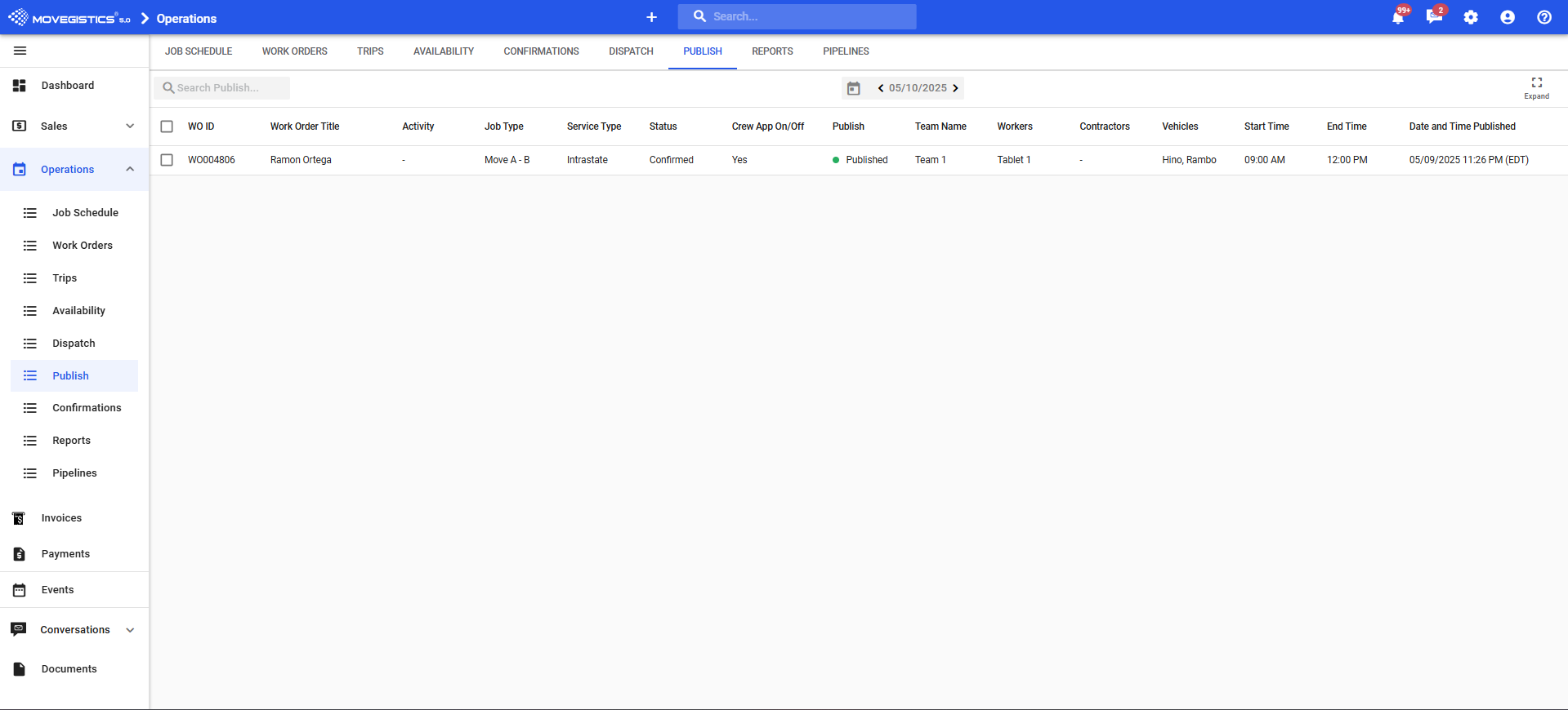 Dispatching your crews isn’t just about assigning jobs—it’s about communicating the right job details to the right team at the right time. The Publish module in Movegistics 5.0 allows you to formally release Work Orders to your field teams via the Crew App. This ensures that nothing goes live until you’re ready—giving your office complete control over job visibility, edits, and timing. ✅📲