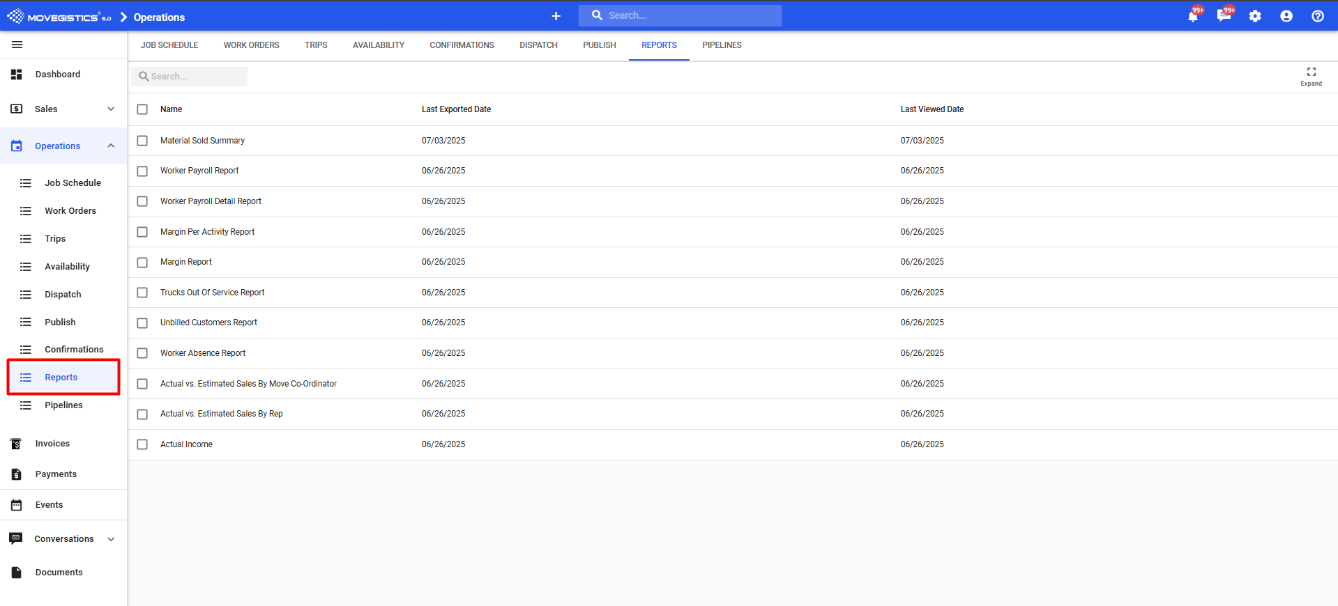 The Reports tab in the Operations section of Movegistics 5.0 gives you crystal-clear visibility into your daily operations, financials, crew performance, and unbilled jobs. 📊