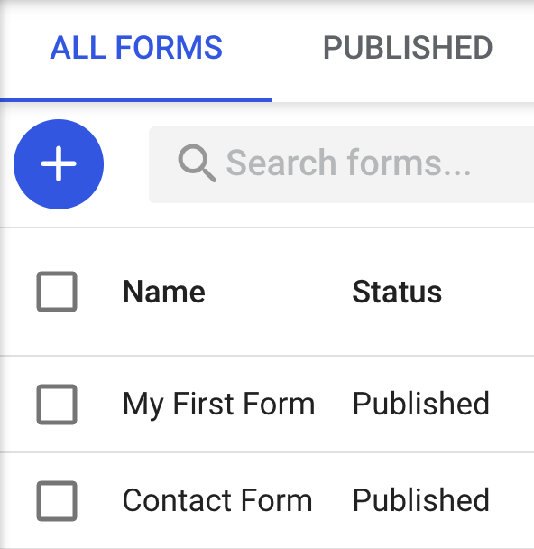 Click the blue + button to add a new form.
