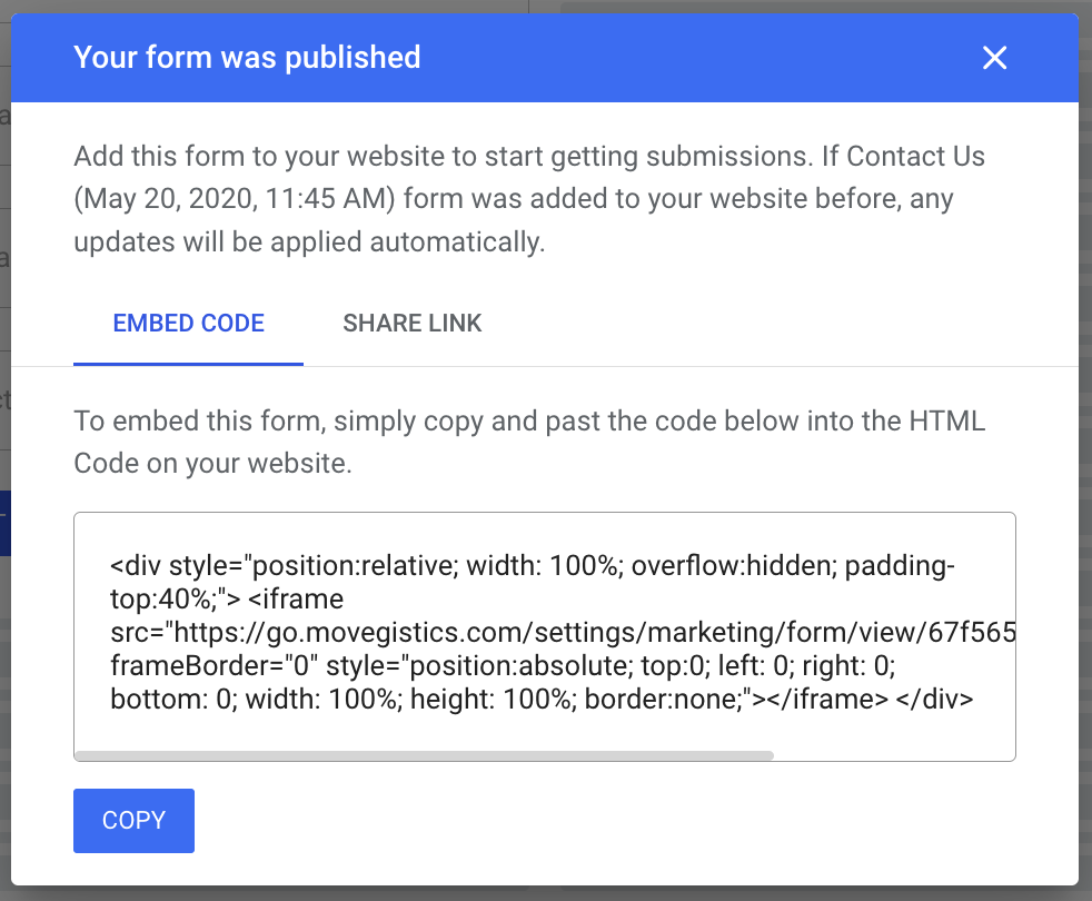 To embed the form on your website, copy the HTML